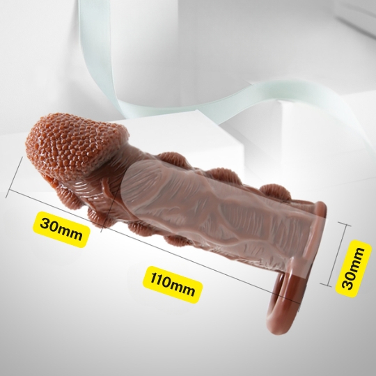 Bao cao su đôn dên da nâu với thiết kế hình dạng da cóc chạy dọc 2 bên thân và toàn thân được thiết kế gân nhỏ giống như dương vật thật. Bao cao su da cóc còn được thiết kế các nốt gai mềm nhỏ li ti ở đầu dương vật, tạo cảm giác mới mẻ, hưng phấn khi quan hệ. Thiết kế với 6 cọc mụn cóc nhô lên 2 bên thân dương vật, sẽ giúp tăng kích thước dương vật, tăng ma sát co bóp cho âm đạo. Bạn hoàn toàn có thể yên tâm việc 1 chiếc bao cao su siêu gai chấn động như thế này chơi có chân thực không? Rõ ràng là nó giúp tăng kích thích cho cô nàng và một điều khẳng định với chất liệu siêm mềm sẽ giúp cuộc yêu tăng thêm tính chân thực giống như xài hàng thật vậy thôi.