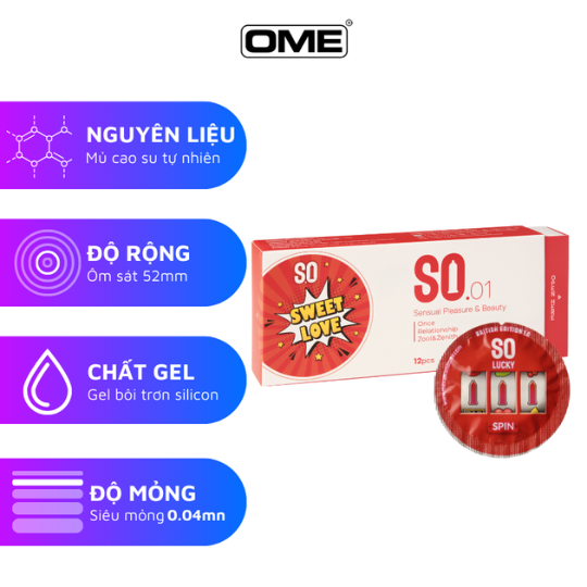 Bao cao su SO siêu mỏng hương dâu hộp 12 cái